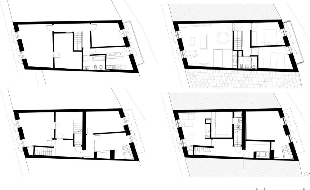 Floorplans of the 1st and 2nd floor. Left: previous plan, Right: new plan.